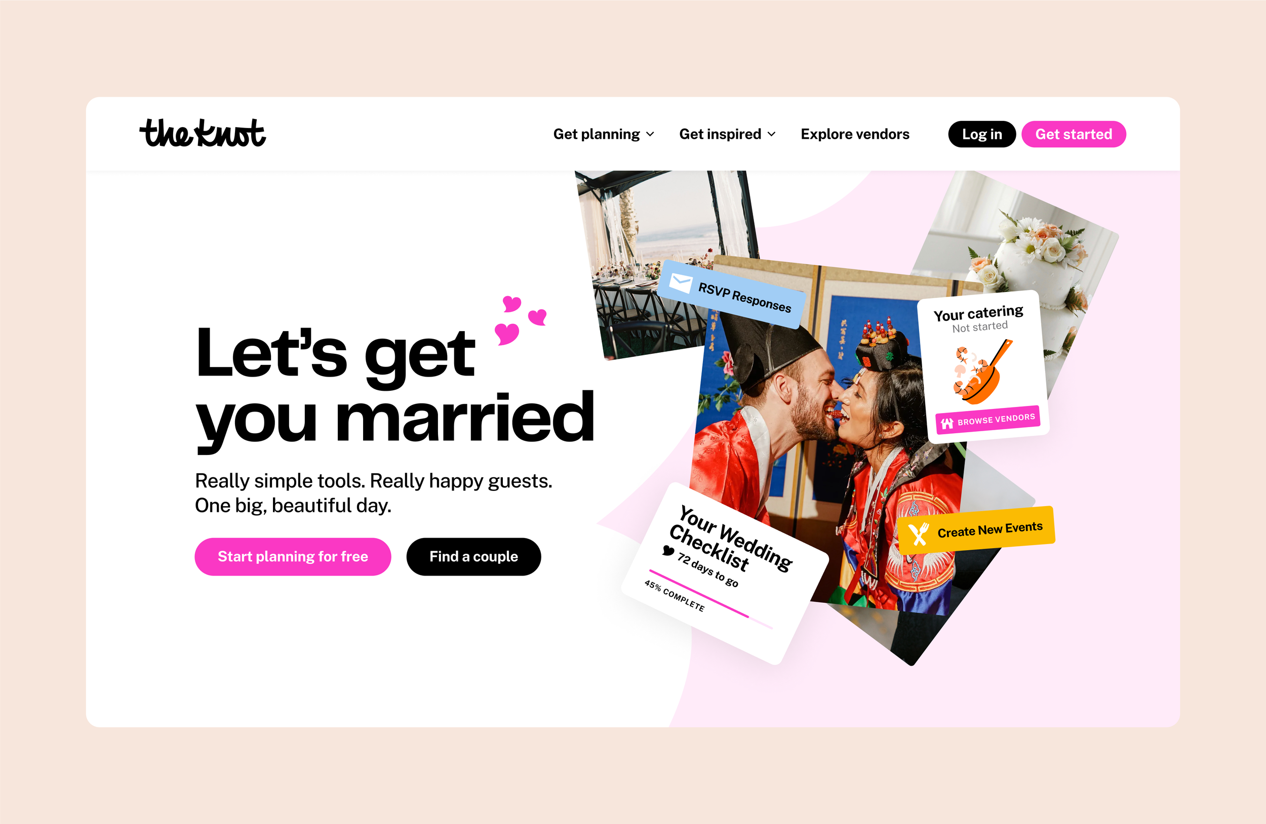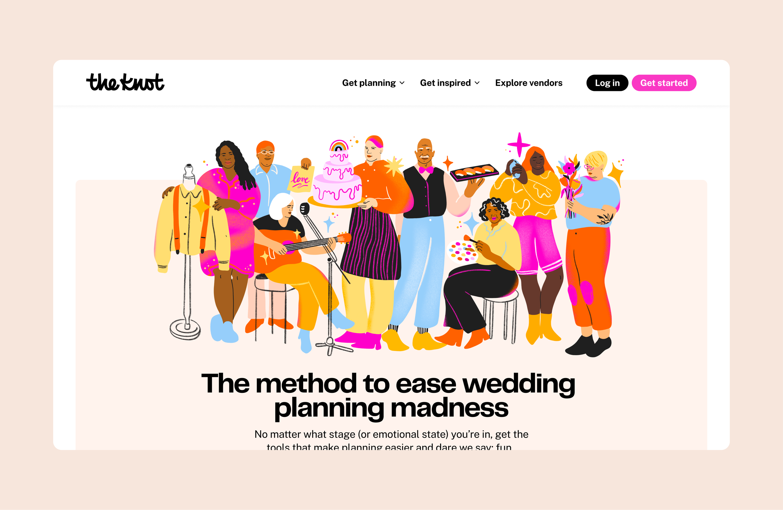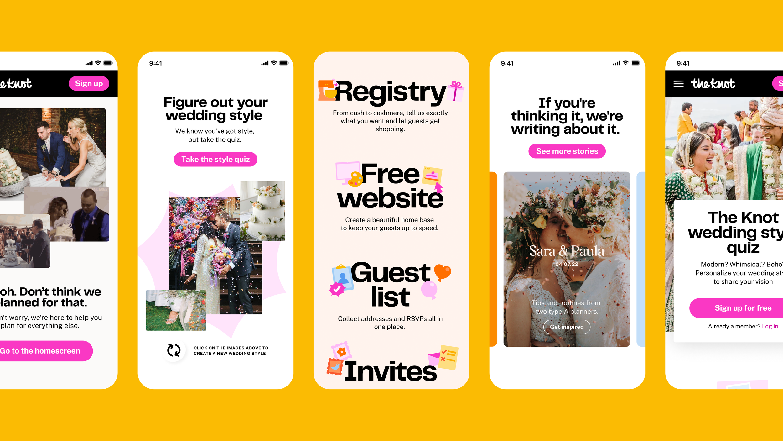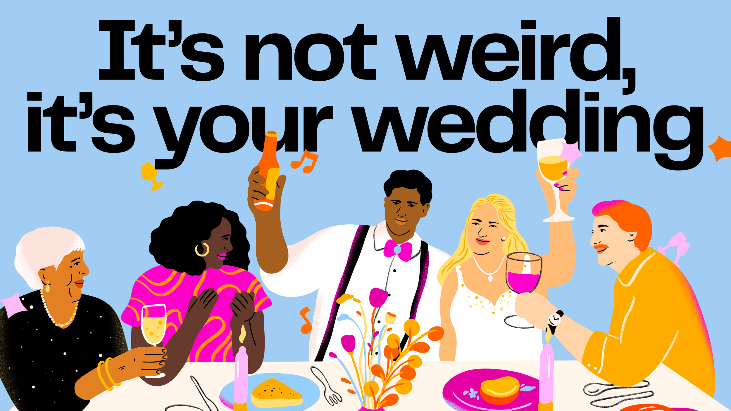 Color-wise, adding a new and powerful ‘Party Pink’ was a very deliberate decision—a move away from the soft, quieter wedding brand of old. It’s here to say ‘Let’s have a damn good time celebrating all that work we put into planning.’